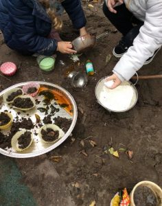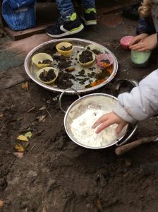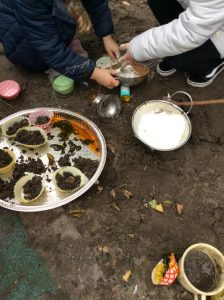 It’s a childhood classic and creates endless fun, imagination and learning. The timeless mud pie is a favourite with our preschool children in Reading at the moment. Our mud kitchen is always available in the nursery garden and just this week we have seen some amazing adventures.