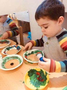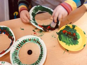 The children have been creating Christmas wreaths today. They were given a range of brushes to use, including a shaving brush allowing for a greater hand grip. They had great fun deciding how they wanted it to look, but the question of the day is, can you ever have too much glitter at Christmas?