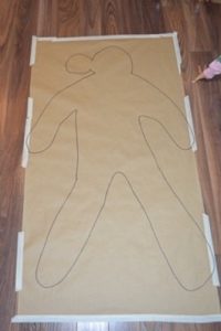 Start by laying out a big roll of paper and taping down the ends, the paper has to be long enough for the child is going to lie down on it. As your child lies down use a pencil to trace around their body. A great opportunity to practice keeping still – tricky with the tickles from the pencil! That’s the hard part done, now it’s time to decorate and be creative!